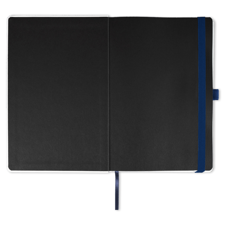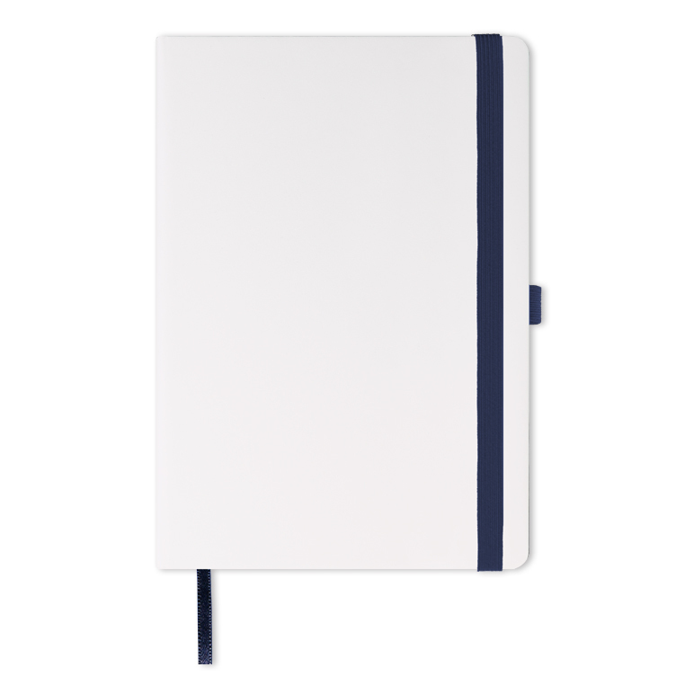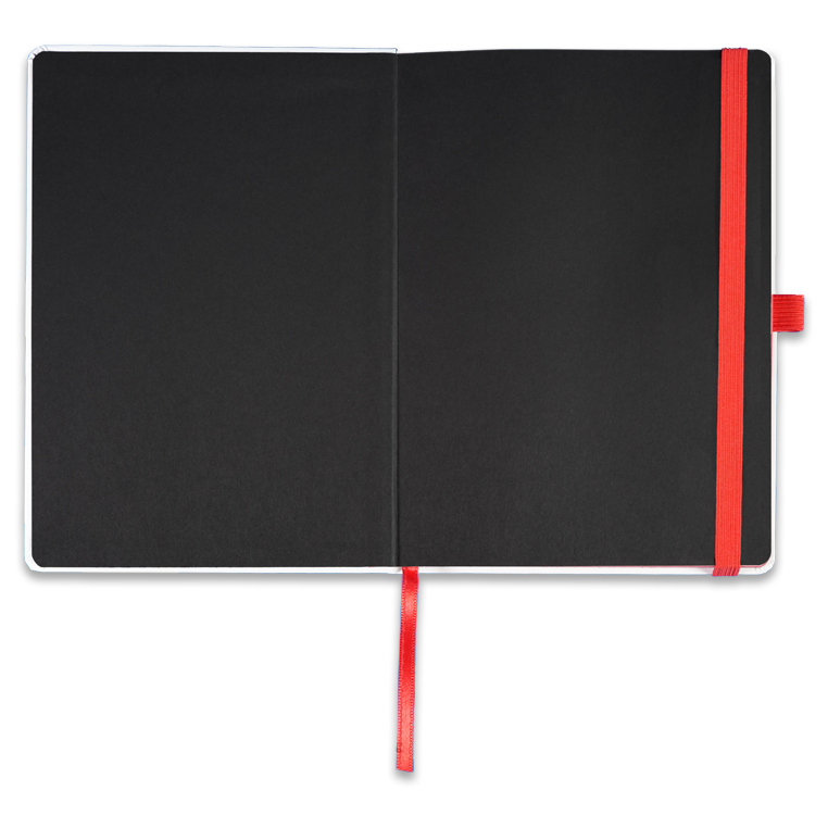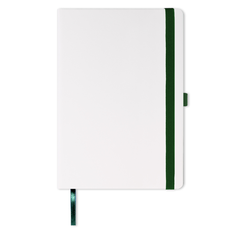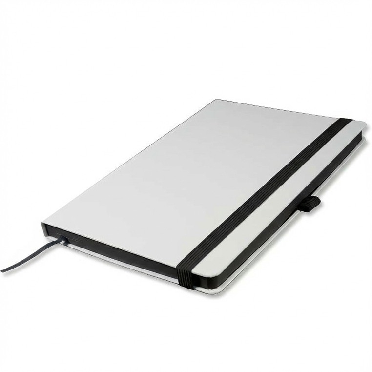 Записная книга формат 14,5х21 см в линейку 256 страниц, кремовая бумага 70 г сертифицирована FSC. Дополнительно имеются страницы в точку, в клетку, для систематизации проектов, а также листы без разметки с перфорацией. Печать в 1+1 цвет, все страницы пронумерованы. Шитый блок Форцазы из черной дизайнерской бумаги 140 гр FSC. Белая обложка из высококачественного кожзама от ведущего итальянского производителя. Ляссе в тон обложки. Резинка 10 мм в тон обложки.