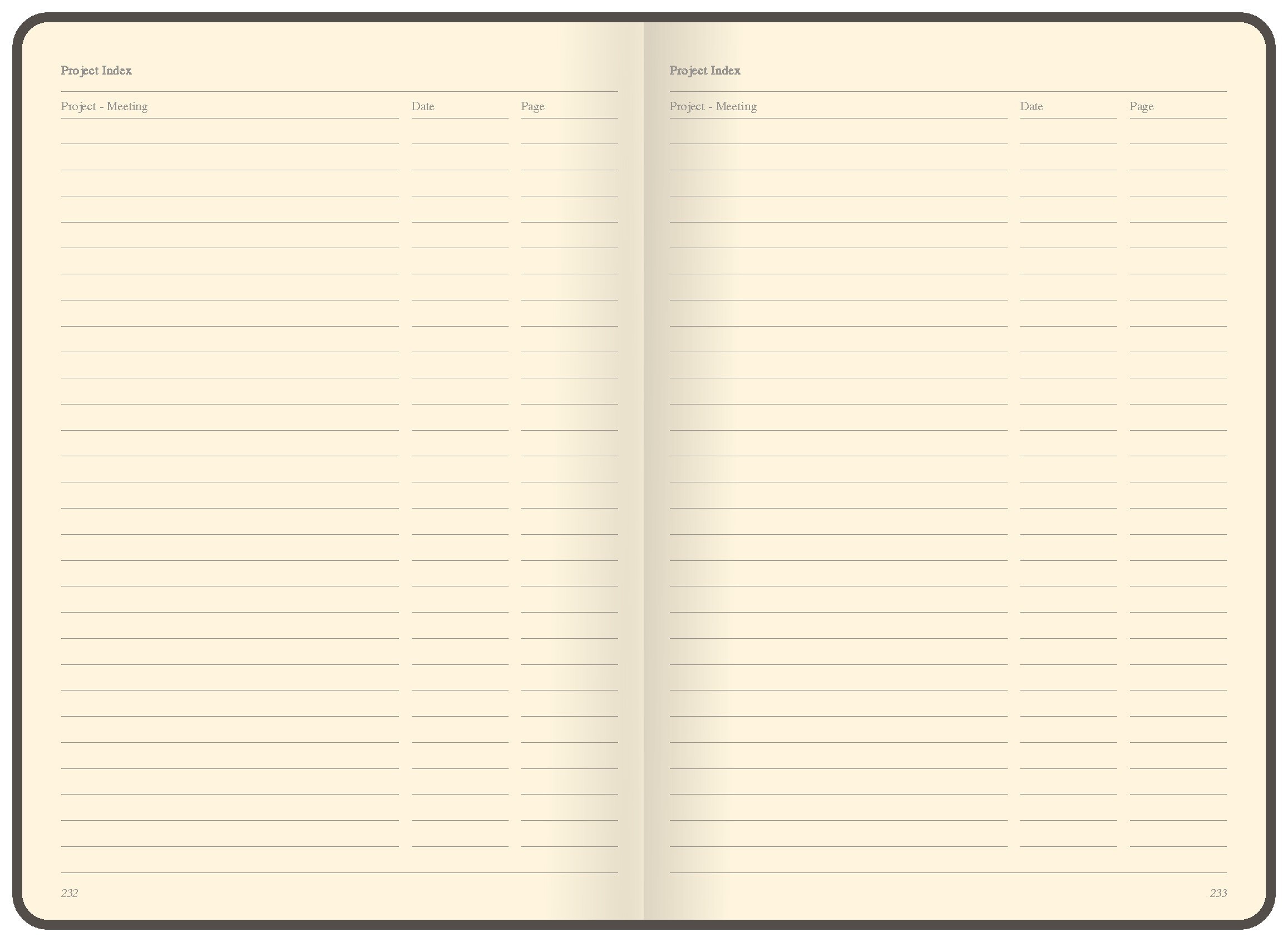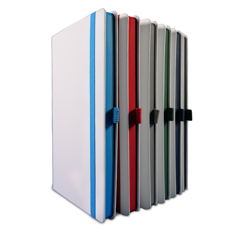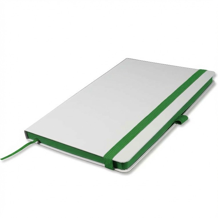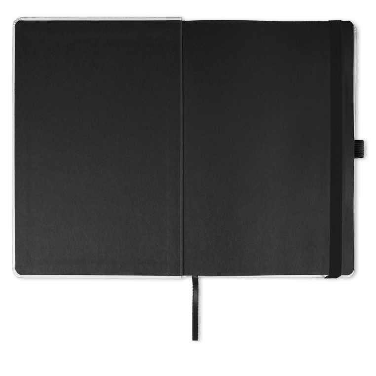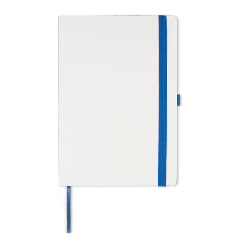 Записная книга формат 14,5х21 см в линейку 256 страниц, кремовая бумага 70 г сертифицирована FSC. Дополнительно имеются страницы в точку, в клетку, для систематизации проектов, а также листы без разметки с перфорацией. Печать в 1+1 цвет, все страницы пронумерованы. Шитый блок Форцазы из черной дизайнерской бумаги 140 гр FSC. Белая обложка из высококачественного кожзама от ведущего итальянского производителя. Ляссе в тон обложки. Резинка 10 мм в тон обложки.