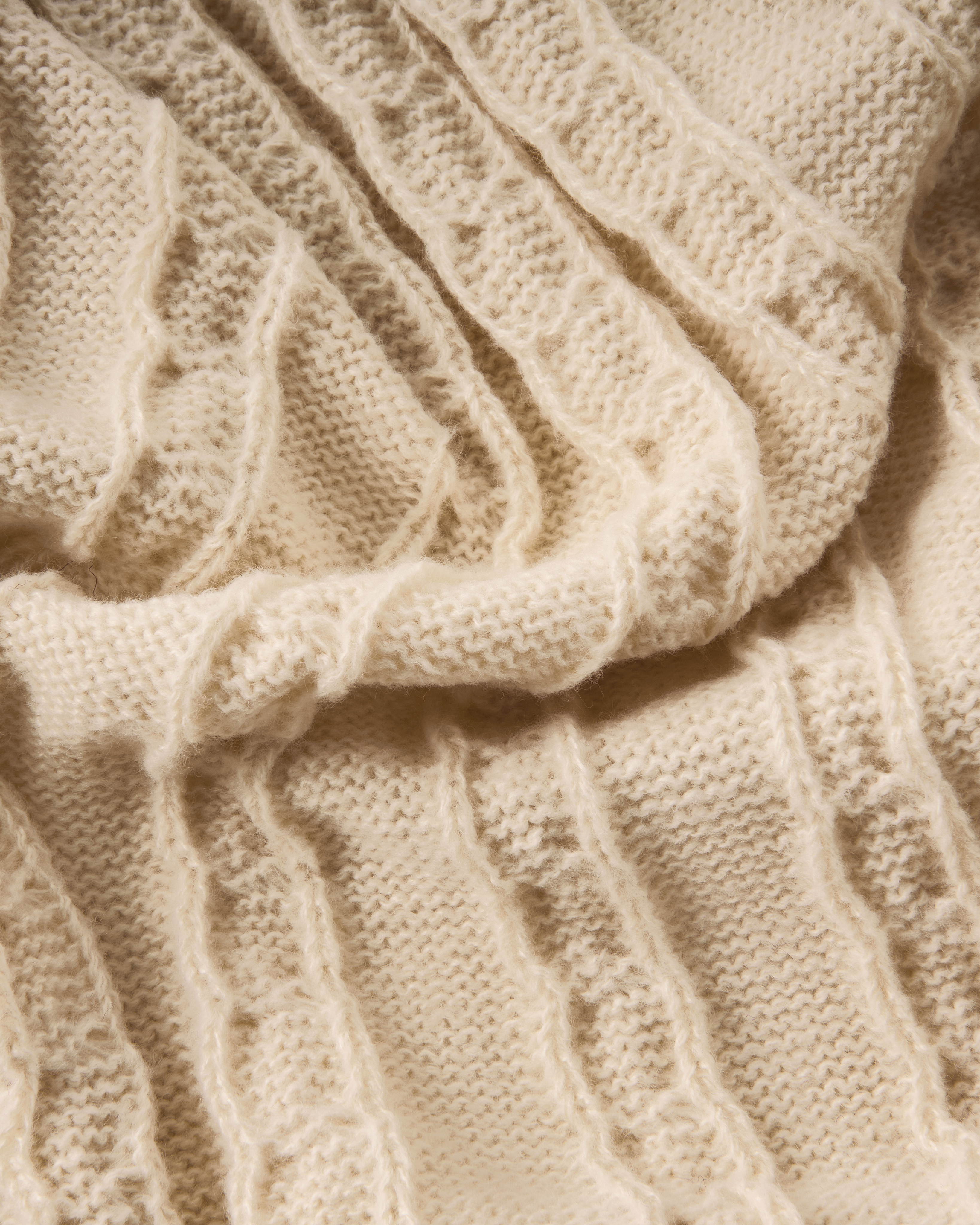 Уютный плед в универсальном бежевом цвете с объёмным узором «косы». Плотная вязка, мягкая текстура и стильный дизайн делают его отличным акцентом для дома.