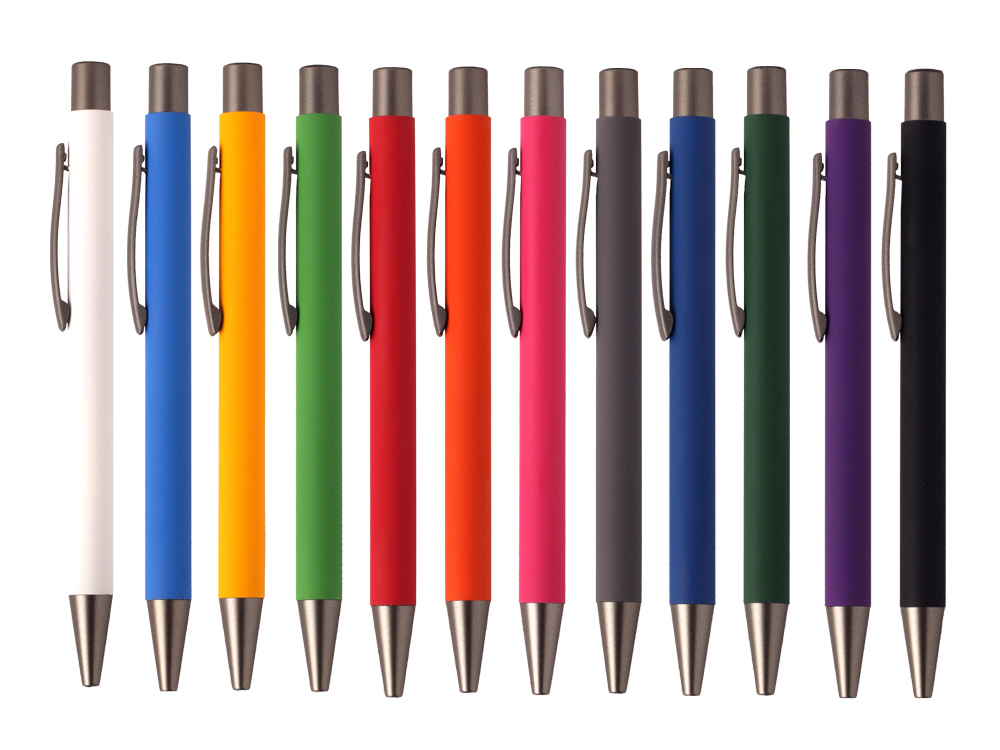 Шариковая алюминиевая ручка с покрытием soft-touch. Нажимной механизм. Размер ручки: ø10 x 137 мм Цвет чернил: синий